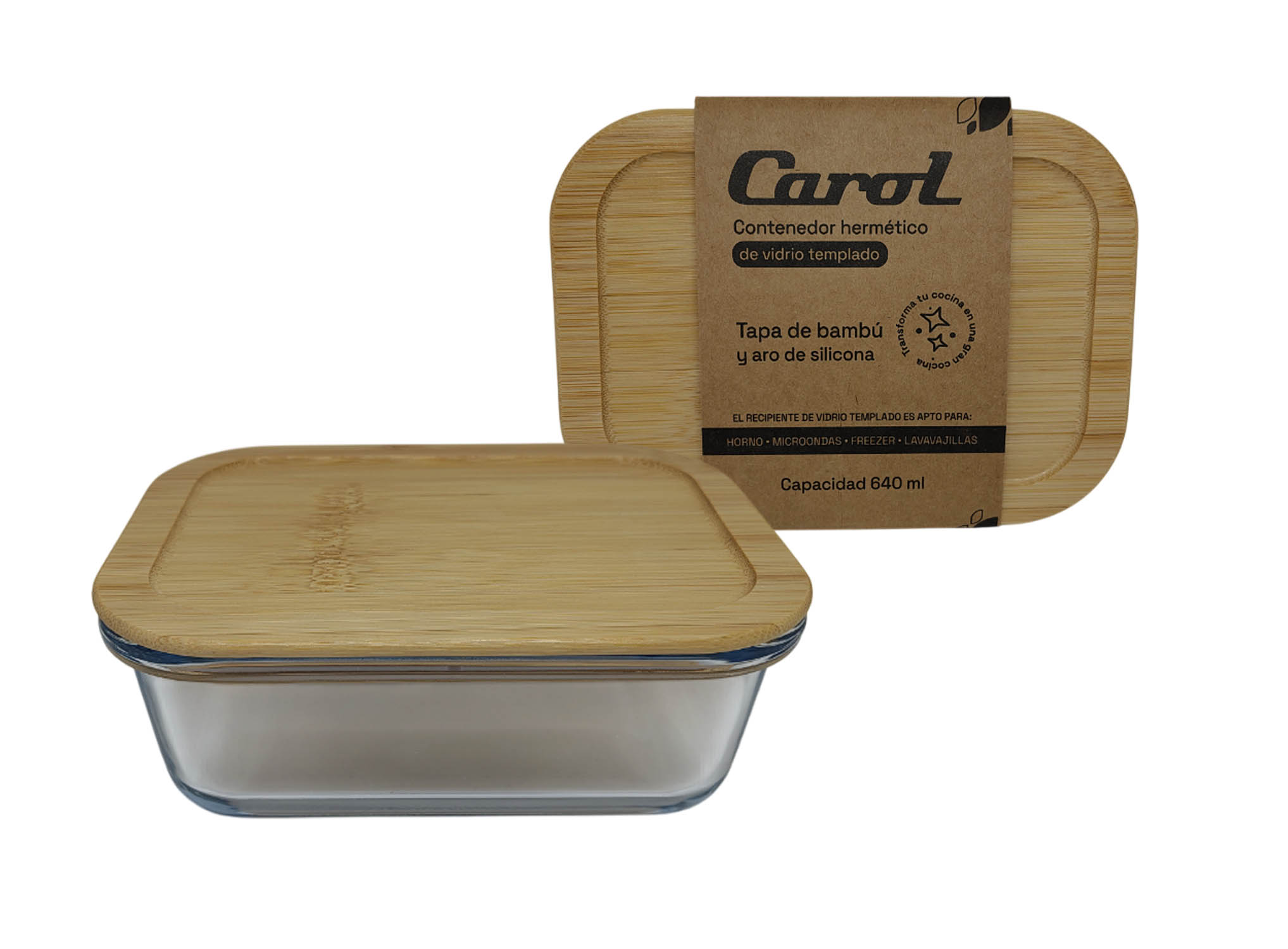 CONTENEDOR HERM. RECT. VID. T/BAMBU 17.8X13.1X6.6CM 640ML cantidad